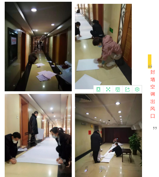 一是飯店當(dāng)日所有值班員工用3個(gè)小時(shí)封堵房間內(nèi)空調(diào)進(jìn)、出風(fēng)口,阻斷病毒傳播渠道;二是加班加點(diǎn)對(duì)房間空調(diào)開(kāi)關(guān)、衛(wèi)生間換氣扇開(kāi)關(guān)進(jìn)行拆裝封堵,確保使用安全;三是對(duì)房間及樓道等公共區(qū)域進(jìn)行徹底清潔消毒。經(jīng)過(guò)飯店上下齊心協(xié)力,晝夜奮戰(zhàn),已按屬地政府疫情防控指揮部要求準(zhǔn)備就緒。